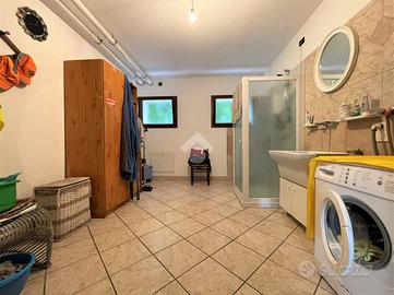 Accedendo dall' entrata laterale ci ritroviamo invece in un ampio disimpegno dove poter accedere alla comoda lavanderia e al garage doppio.