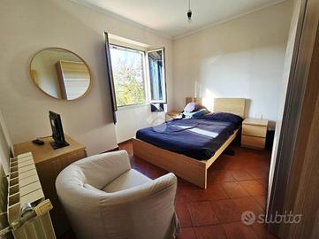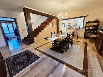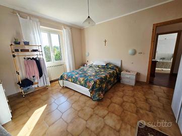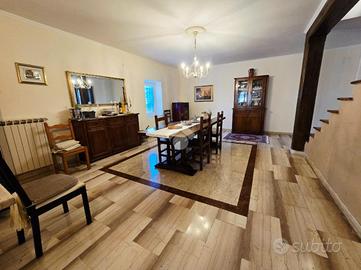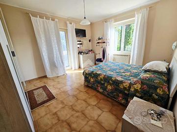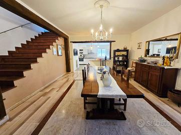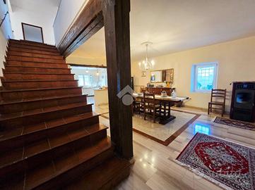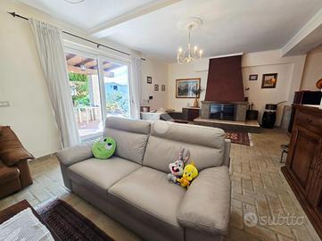 Una comoda scala interna conduce al piano superiore che vanta un'ampia metratura e dove sono presenti una camera matrimoniale padronale, due camerette ed un bagno con vasca e finestra. La presenza inoltre di un disimpegno con camino e terrazzo, offre la possibilità di godere di una seconda zona living o della possibilità di sfruttare la villa per 2 nuclei familiari considerata la presenza di impianti anche su questo piano. Il ripristino di un tramezzo, consentirebbe di ricollegare anche il piano mansardato dell'immobile, attualmente allo stato grezzo, che dispone di accesso indipendente da una scala in muratura esterna.