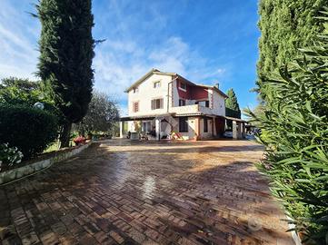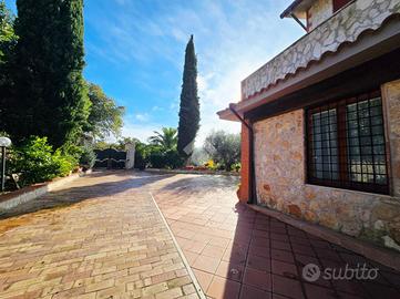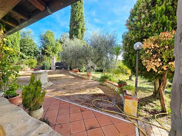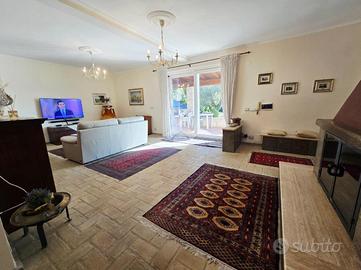 In Località Monte Lino, ubicata in una posizione riservata immersa nel verde, proponiamo in vendita una villa unifamiliare di 280 mq ca., disposta su 3 livelli, circondata da spazi esterni per una superficie totale di 8.000 mq in parte pavimentati e in parte terreno agricolo con piante da frutto e ulivi in produzione.