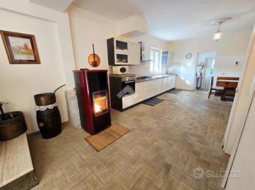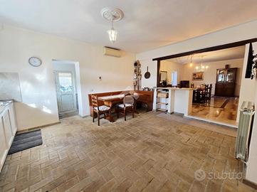 Entrando all'interno della casa, al piano terra, si viene accolti da una confortevole zona living con termocamino e da un soggiorno-pranzo con cucina a vista, il tutto ulteriormente valorizzato da una caratteristica pavimentazione in cotto artigianale. A completamento di questo piano, un tinello con bagno attiguo appena ristrutturato ed una cameretta/studio.