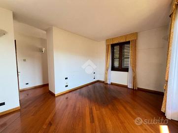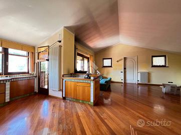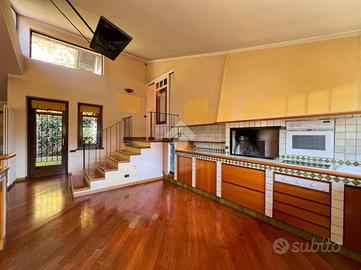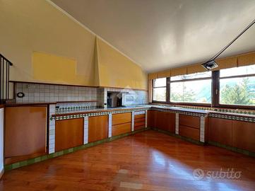 CLUSONE In posizione tranquilla e riservata, ma comoda a tutti i principali servizi, proponiamo in vendita una splendida villa singola caratterizzata da ottima esposizione solare, vista aperta e ampi spazi abitativi. La proprietà è circondata da un ampio giardino privato, ideale per momenti di relax all'aperto. L'abitazione si sviluppa su più livelli. Al piano principale l'ingresso si apre su un luminoso soggiorno con accesso diretto al terrazzo vivibile, perfetto per pranzi e momenti conviviali, affiancato dalla cucina. Un corridoio conduce alla zona notte dove troviamo un bagno finestrato e tre camere da letto, di cui una con bagno privato; due camere dispongono inoltre di accesso a un terrazzo in comune. Il piano superiore ospita un ampio sottotetto a rustico, uno spazio versatile da personalizzare secondo le proprie esigenze. Al piano inferiore sono presenti un bagno di servizio, una lavanderia e un locale accessorio attualmente adibito a taverna, ideale come zona hobby, palestra o spazio ricreativo. La proprietà è inoltre dotata di predisposizione per l'installazione di un ascensore che collega il piano seminterrato al box di circa 105 mq, perfetto per più autovetture o come ulteriore spazio di deposito. Soluzione ideale per chi cerca indipendenza, comfort e tranquillità senza rinunciare alla comodità dei servizi.