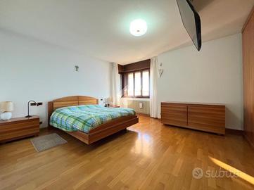 Una scala conduce al primo piano, dedicato alla zona notte. A pochi passi dal disimpegno si trova l'atrio notte che conduce alla prima camera e a un comodo bagno. Lungo un ampio corridoio, sulla destra, si trovano 2 camere da letto spaziose, tutte con pavimentazione in parquet e ciascuna con un bagno privato finestrato, completo di doccia. In fondo al corridoio si trova la camera padronale, anch'essa con bagno privato finestrato, dotato sia di doccia che di vasca. Questo piano ospita inoltre una stanza adibita a palestra, con accesso a un'ampia terrazza dotata di predisposizione per l'installazione di una piscina. Un altro terrazzo si trova al secondo piano, da cui si può godere di una vista mozzafiato sulle montagne friulane.