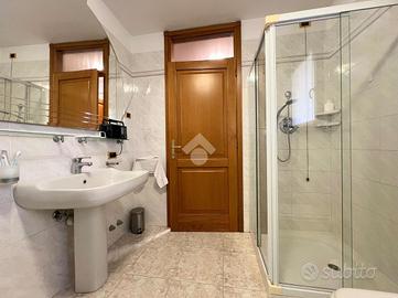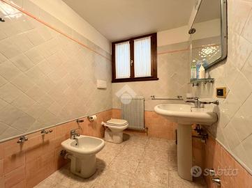 Scendendo le scale, si accede al piano seminterrato, che ospita una spaziosa taverna finestrata con una cucina su misura e un tavolo da pranzo che può ospitare fino a 10 persone. Sempre al piano seminterrato si trovano l'ultimo bagno finestrato della pro