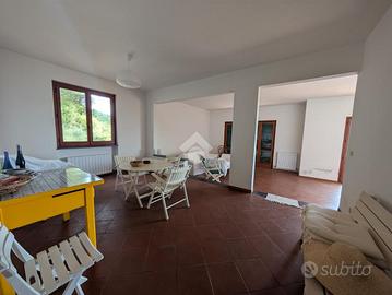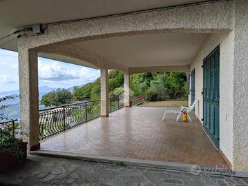 Cogorno - Villa indipendente di circa 180 metri su un piano unico con accesso carrabile da strada privata, ottima esposizione, totale vista mare. L'immobile si sviluppa su un piano unico ed è composto al momento da ingresso, cucina abitabile, salone doppio con camino, sala da pranzo, 2 camere da letto matrimoniali, 2 bagni e sottotetto. Al piano inferiore con ingresso indipendente troviamo un'ulteriore vano di circa 60 metri ad oggi utilizzato come taverna, ma facilmente trasformabile in un'altro appartamento. Completa la proprietà un ampia cantina di 20 metri. La villa si raggiunge comodamente tramite strada privata asfaltata che porta ad un'area parcheggio di circa 80 metri. Circondata da circa 8000 metri di terreno, in gran parte recintato troviamo, compresi nel prezzo di richiesta, anche 2 magazzini da ristrutturare completamente con una superfice totale di circa 100 metri.