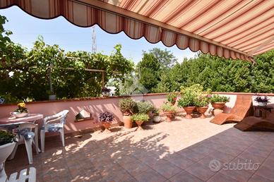 Completa la soluzione l'ampio giardino su 4 lati di circa 450 mq , la terrazza abitabile di circa 45 mq e i 2 posto auto coperti.