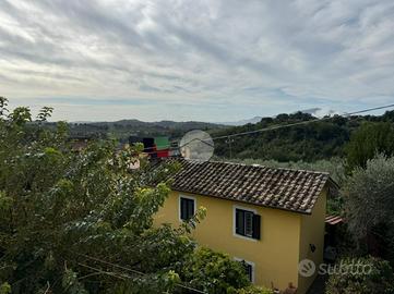Al piano primo troviamo la parte abitativa composta da: un disimpegno d'ingresso, una cucina abitabile con camino, un soggiorno, due camere da letto di cui una con accesso al terrazzo panoramico ed un bagno.