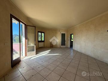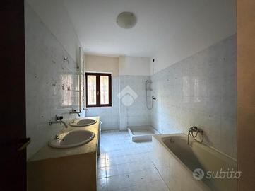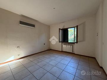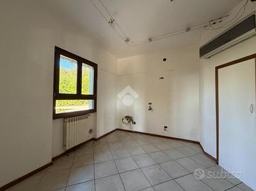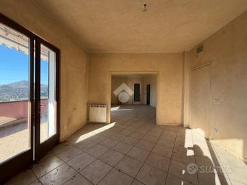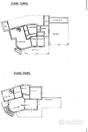 La soluzione, con vista meravigliosa sulla città, si sviluppa su due livelli distinti: il piano terra consta ad oggi di zona taverna con camino, di un bagno di servizio finestrato e di tre vani di cui un ripostiglio e due studi.