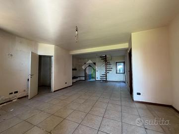 Tramite una scala a chiocciola si accede al primo piano, dove si sviluppa un appartamento trilocale, composto da cucina separata, una spaziosa zona giorno con sala da pranzo, due camere di cui una matrimoniale e una doppia e un bagno finestrato.