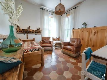 Proseguendo per le scale e raggiungendo il piano superiore troviamo altri tre spazi attualmente arredati in una seconda cucina e due ulteriori camere da letto ben illuminate e un ulteriore bagno finestrato con vasca.