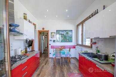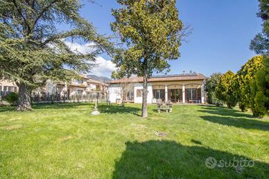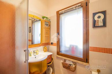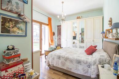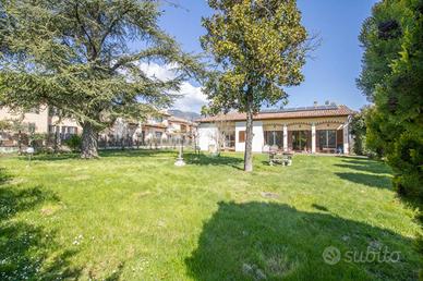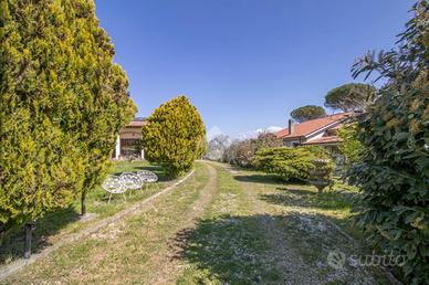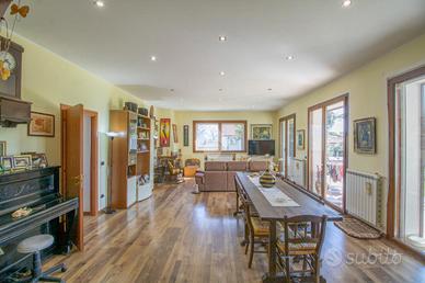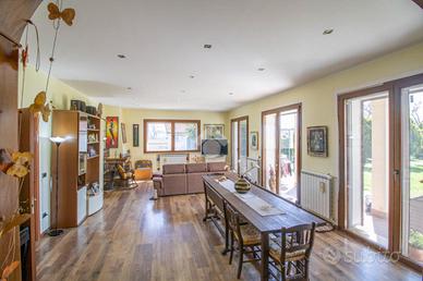 * soggiorno con camino, cucina abitabile con accesso al giardino, 2 camere matrimoniali di cui una con cabina armadio, 1 cameretta, 1 studio e 2 bagni con doccia al piano terra;