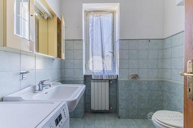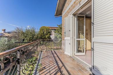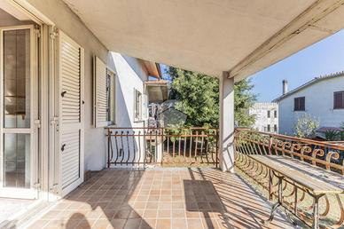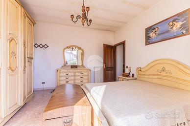 L'ingresso si apre su un ampio salone doppio con camino, cuore della zona giorno, da cui si accede sia al bagno di servizio sia alla cucina abitabile, che a sua volta conduce al portico esterno, ideale per pranzi e cene all'aperto. Dal salone si raggiunge la zona notte, composta da due camere matrimoniali -- una con terrazzo e l'altra con balcone -- una cameretta e un bagno con vasca.