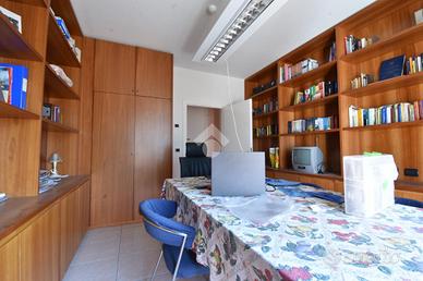 Piano terra: luminosa zona giorno con cucina e soggiorno open space, ampio terrazzo con vista panoramica su mare e colline, una camera matrimoniale e due bagni.