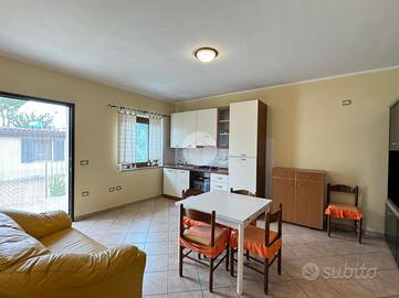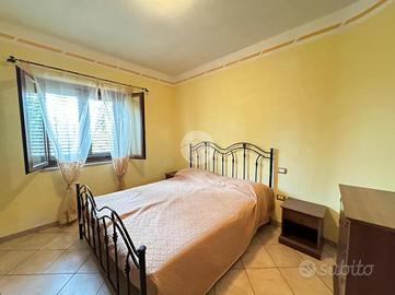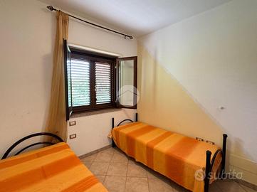 Sulla sinistra del cancello troviamo una prima villetta con rifiniture anni '80 internamente così composta: ingresso in soggiorno/cucina con angolo cottura con affaccio su comoda veranda, zona notte con 2 camere da letto, un comodo ripostiglio e infine il bagno.