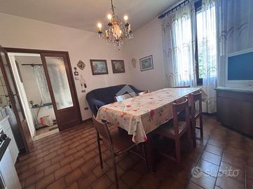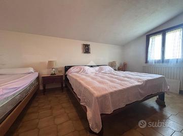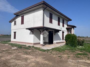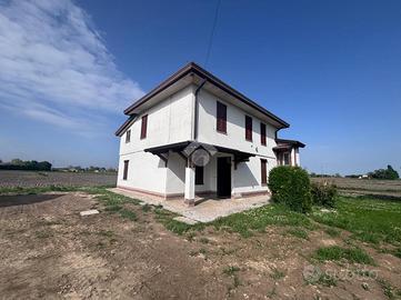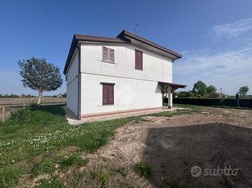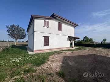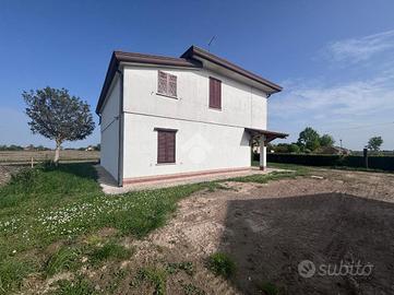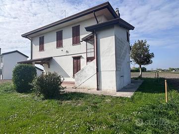 Correzzola: In località Villa del Bosco, villa singola immersa nel verde della campagna con ampio giardino di proprietà. L'immobile presenta due unità abitative. Al piano terra si accede dal portico nell'ampia cucina abitabile, bagno finestrato con doccia, due camere matrimoniali ed una terza stanza da adibire in base alle proprie esigenze. Le scale esterne in muratura conducono al piano primo con ingresso nella cucina, il disimpegno porta al reparto notte dove son presenti tre camere di cui una matrimoniale, un secondo bagno finestrato con doccie e vasca ed un ripostiglio. A completare ampio giardino. Possibilità di avere dello scoperto aggiuntivo. Libera da subito.