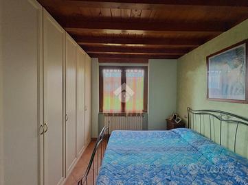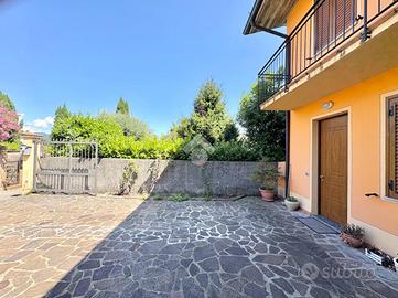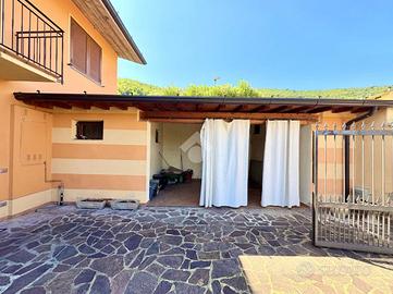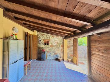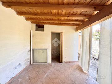 L'ingresso privato conduce a un ampio e luminoso soggiorno con cucina a vista, camera matrimoniale e bagno finestrato con doccia. Completa il piano terra un suggestivo porticato coperto, perfetto per essere vissuto tutto l'anno, che si affaccia su un giardino con annesso deposito, sfruttabile anche come piccola taverna, cantina o ripostiglio.