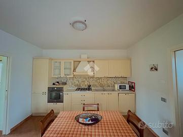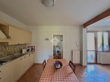 Tramite una scala interna si accede al primo piano, attualmente organizzato come un secondo appartamento indipendente composto da soggiorno con cucina a vista, camera matrimoniale con accesso al balcone privato e ulteriore bagno finestrato con doccia.