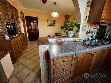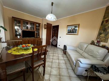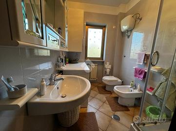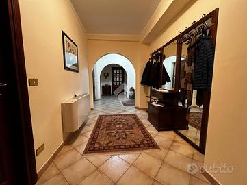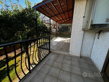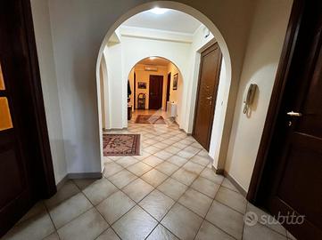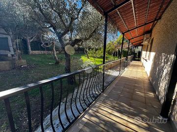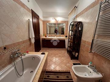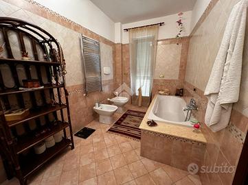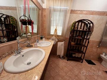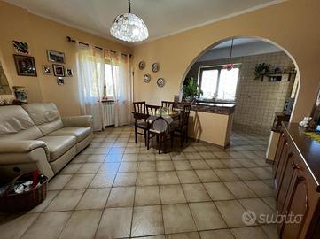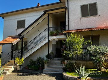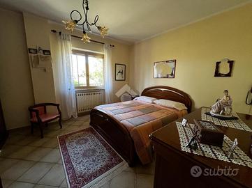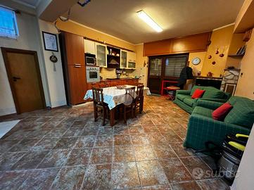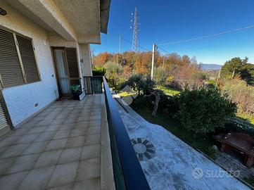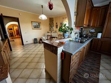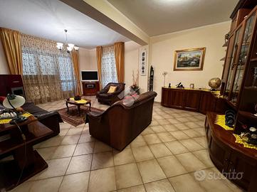 L'immobile è cosi suddiviso: al piano rialzato troviamo un comodo quadrilocale composto da cucina abitabile, tre camere da letto e due bagni, con balconi e uscita sul giardino.Al primo piano è presente un'unità immobiliare della stessa superfice di circa 170 mq che al momento è rustica e pertanto la soluzione è ideale per chi volesse a proprio piacimento rifinire l'immobile e magari poter destinare ad un proprio familiare o destinarla ad una zona prevalentemente ludica o ancora a servizio della soluzione sottostante.Gli ingressi sono completamente indipendenti tra di loro e pertanto la soluzione soprastante non risulta invasiva per chi volesse destinare l'immobile a più famiglie.Al seminterrato invece è adibita una tavernetta completa di bagno e ripostiglio, completamente rifinita. A ridosso della stessa troviamo un locale deposito non rifinito adibito a magazzino attrezzature varie e posto auto coperto.Il piano rialzato è completamente rifinito con pavimentazione unica in gres porcellanato, i bagni invece sono cosi rivestiti: il primo bagno è in ceramica bianca e dotato di doccia, sanitari, lavabo e scarico per la lavatrice; il secondo è in ceramica rosa dotata di doppio lavabo, vasca da bagno, sanitari e termo arredo. Entrambi i bagni sono dotati di finestra.Gli infissi esterni, sono in alluminio vetro camera con la parte esterna dotata di chiusure alla romana orientabili;La cucina è completamente abitabile e dotata di penisola ottima come piano di lavoro. L'ambiente si potrebbe addirittura suddividere per creare una zona cottura indipendente dalla zona pranzo. Volendo, potrebbe essere sfruttato il camino che al momento non viene utilizzat..