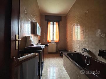 La zona notte è composta da una stanza matrimoniale e una camera singola, entrambe accoglienti e ben illuminate. Il bagno finestrato con vasca garantisce comfort e funzionalità. Al livello inferiore, troverai un garage spazioso con bagno di servizio e al piano seminterrato una cantina dotata di finestre che offrono ulteriore spazio di stoccaggio.