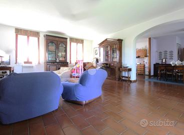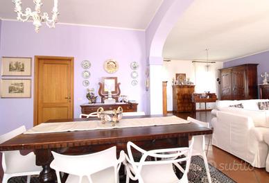 Salendo al piano primo troviamo una comoda zona giorno composta dal luminoso soggiorno di 50 mq e dalla cucina abitabile separata, oltre a 3 comode camere matrimoniali, a due bagni finestrati e ad un pratico sgombraroba.