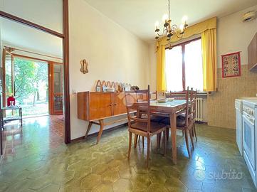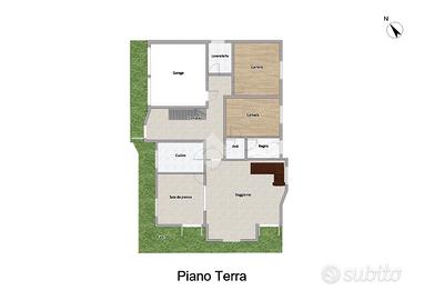 Al piano terra, l'ingresso introduce ad un ampio soggiorno impreziosito da porte finestre con affaccio sul giardino, collegato alla sala da pranzo con cucina abitabile otre a una camera da letto con bagno finestrato