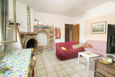 Una scala esterna conduce al secondo appartamento, al primo piano, con ingresso su un'ampia zona giorno open space, composta da soggiorno, cucina abitabile e zona relax con camino. La zona notte include una camera matrimoniale, due camere singole e bagno finestrato con vasca. Completa il piano un balcone semi-perimetrale.