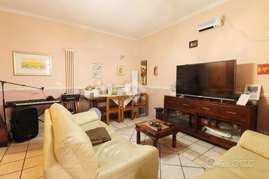 Il primo appartamento, al piano terra, si apre su un soggiorno con angolo cottura. Tramite disimpegno si accede alla zona notte, composta da due camere matrimoniali, una camera singola e bagno finestrato con vasca.