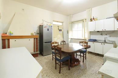 Una scala esterna conduce al secondo appartamento, al primo piano, con ingresso su un'ampia zona giorno open space, composta da soggiorno, cucina abitabile e zona relax con camino. La zona notte include una camera matrimoniale, due camere singole e bagno finestrato con vasca. Completa il piano un balcone semi-perimetrale.