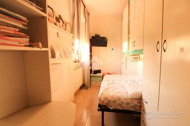 Il primo appartamento, al piano terra, si apre su un soggiorno con angolo cottura. Tramite disimpegno si accede alla zona notte, composta da due camere matrimoniali, una camera singola e bagno finestrato con vasca.