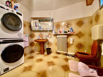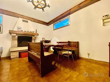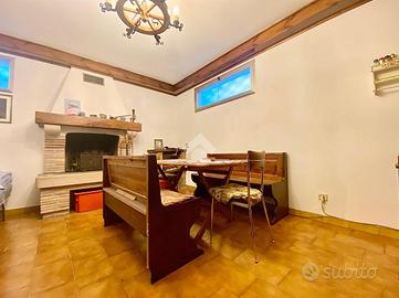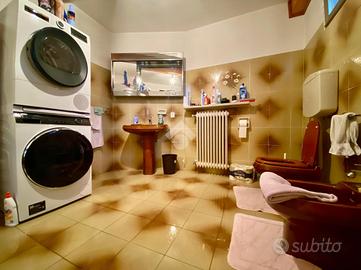 Dal garage si accede direttamente alla taverna con caminetto, un ambiente caldo e accogliente ideale per cene e convivialità, completa di un comodo bagno-lavanderia di ampie dimensioni.