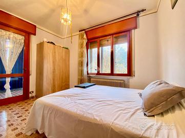 Qualche gradino più su si apre la zona notte, dove troviamo la camera padronale, due camere matrimoniali e un bagno. Una delle camere dispone inoltre dell'accesso alla seconda veranda, con affaccio verso Nord e vista aperta sul paesaggio circostante.