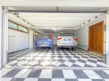 Al piano interrato, gli ambienti accessori completano il comfort: una spaziosa lavanderia, cantina, un secondo ripostiglio e un garage doppio in larghezza con basculante sezionale motorizzato, perfetto per due auto e ulteriori esigenze di spazio.