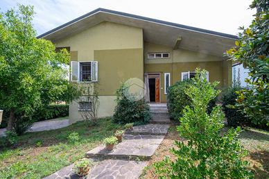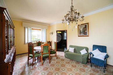 Al piano rialzato troviamo un luminoso soggiorno, una cucina separata e abitabile con uscita sul terrazzo e sul portico d'ingresso. Tre gradini conducono alla zona notte, composta da due camere matrimoniali, una cameretta e un bagno finestrato con vasca e doccia.