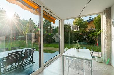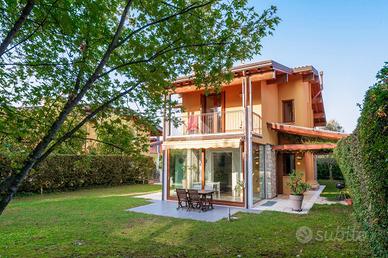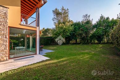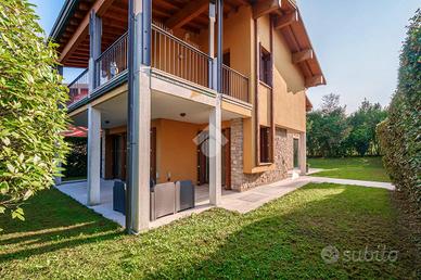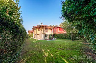 Proponiamo in vendita una villa singola ubicata in esclusivo residence con piscina in un quartiere residenziale tranquillo e ricercato. La villa si sviluppa su piu' livelli ed è così disposta: al piano terra ingresso sull'ampio e luminoso soggiorno e cucina abitabile che si affaciano sul porticato esterno adatto per pranzi,cene e momenti di convivialità . Completa il piano terra un bagno di servizo, al piano primo troviamo: camera da letto padronale con bagno privato, una seconda camera da letto matrimoniale, cameretta e bagno di servizio . Al piano interrato si trova una comoda taverna con cucina, bagno, lavanderia, cantina /ripostiglio e un locale da adibire camera ospiti o studio collegamento diretto ai 2 box con ingressi autonomi. Il giardino esclusivo circonda tutta la proprietà . Questa villa rappresenta un'opportunità unica per chi desidera vivere in un contesto esclusivo, con spazi generosi e in ottimo stato d'uso.