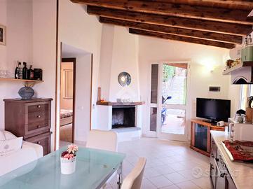 La casa è stata ristrutturata e arredata nel 2007, composta da un ampio soggiorno con angolo cottura caratterizzato da un camino a legna, due camere da letto, un ampio bagno con finestra e due rispostigli che si trovano all' esterno in giardino.