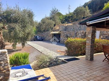 DIANO CASTELLO: in prima collina a circa 1 km dal centro di Diano San Pietro e circa 3 km dal mare, villa indipendente realizzata nel 2000, con terreno, uliveto, vista panoramica e vista mare.