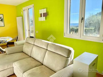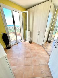 La casa è disposta su due livelli, al piano terra troviamo la zona giorno ampia e luminosa con finestra e porta finestra che guardano il mare.