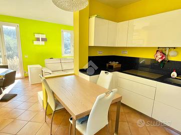 La cucina è stata realizzando su misura dotata di penisola ideale come appoggio per chi ama cucinare o per fare colazione in modo smart.