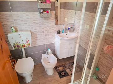 Il bagno dotato di doccia e ampio e affianco è stata realizzata la zona lavanderia.
