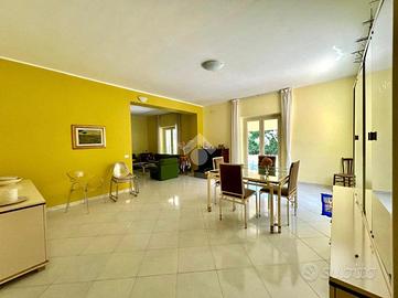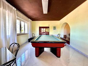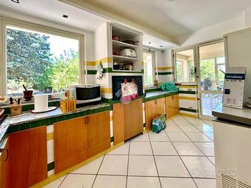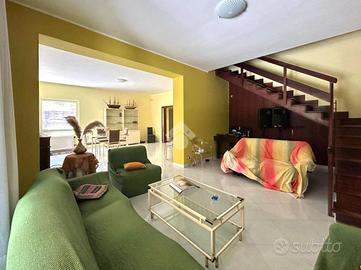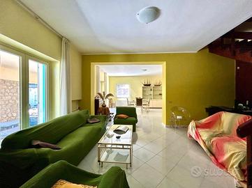 Entrando nell'abitazione troviamo una zona giorno molto ampia e luminosa, vi è un primo soggiorno con camino e zona relax, si prosegue per un secondo soggiorno che ci conduce ad un ampia sala da pranzo attraverso la quale si può accedere all'ampio giardino, dotato di ogni comfort da poter sfruttare per momenti di convivialità.