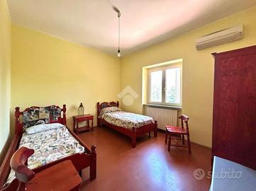 Il secondo livello di questa spaziosa villa comprende la zona notte, composta da quattro camere da letto: due matrimoniali, una doppia ed una singola, tutte e quattro finestrate e luminose. Doppi servizi completano la comodità di questo secondo piano.