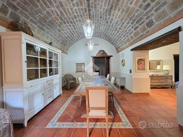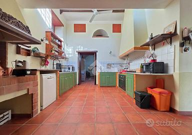 L'immobile è disposto su due livelli. Al piano terra è organizzata la zona giorno con ampia sala da pranzo con particolare volta a botte, spettacolare cucina servita da lavanderia e dispensa, salone con camino in pietra e finiture in legno, studiolo con camino, bagno e ulteriori vani da adibire a proprio piacimento. Al piano primo sono presenti tre spaziose e luminose camere da letto,con accesso al balcone per godere di un risveglio vista giardino sia d'estate che d'inverno. Inoltre ogni camera ha il suo bagno privato.