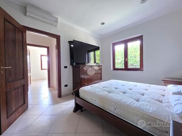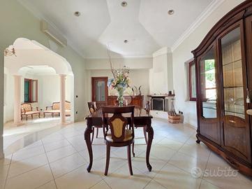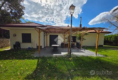 Rif 174A: -Durazzano- In prossimità del centro, proponiamo villa egregiamente rifinita circondata da circa 4500mq di spazio esterno. L'immobile,disposto su un unico livello, ci accoglie con un ampio ingresso-living,che si apre sulla sala da pranzo con camino e sulla cucina; proseguendo ritroviamo tre camere da letto,ripostiglio, bagno patronale con antibagno e vasca idromassaggio,infine ulteriore bagno con doccia. A servizio della villa sono presenti anche sottotetto adibito a deposito,garage con predisposizione per ricarica automobili elettriche e taverna dallo stile moderno, dotata di ogni confort.