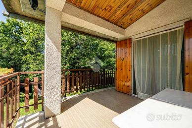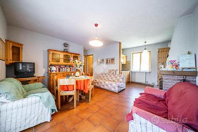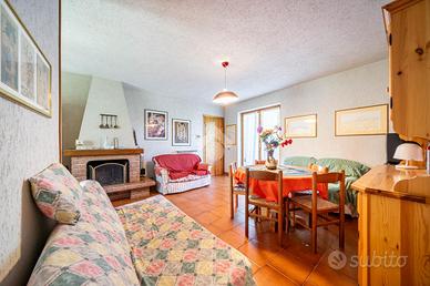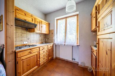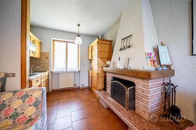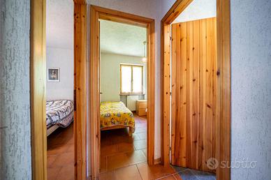 Il primo dispone di un soggiorno open space con ampia cucina caratterizzato da un camino e tipiche travi a vista, oltre a due luminose camere da letto e un bagno con balcone; è presente inoltre un ampio terrazzo raggiungibile dal soggiorno.