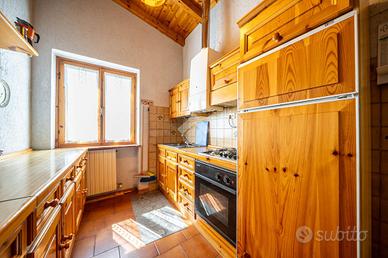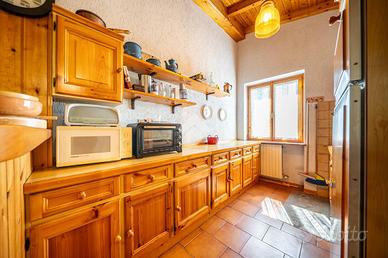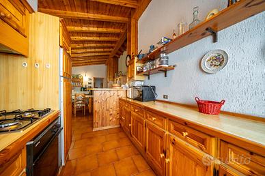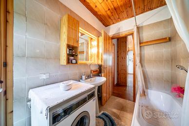 La luminosità degli ambienti è esaltata dalle ampie finestre e dalle travi a vista che conferiscono carattere e calore agli interni.