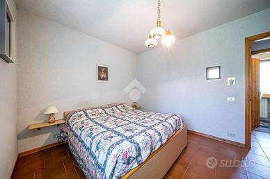 Al piano terra la villa dispone di una luminosa taverna con cucina e ampio camino, due camere da letto e un bagno, accedendo al vano scale troviamo l'accesso al garage doppio.