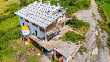 A soli 4 km dal centro di Erbezzo proponiamo in vendita CASA INDIPENDENTE su due livelli con corte di pertinenza, magazzini e ampio terreno agricolo di circa 5.000 mq.