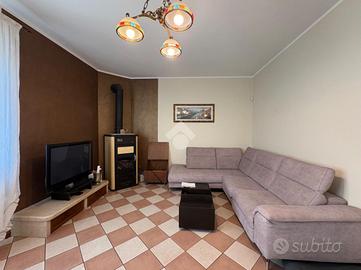 All'interno, il soggiorno dotato di stufa si apre sulla cucina separata ed abitabile, ideale per momenti conviviali.