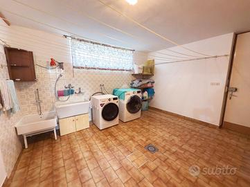 Il piano seminterrato è costituito da una cantina, una grande lavanderia, un bagno con doccia ed un altro locale adibito a cameretta ma che potrebbe avere usi alternativi come taverna o deposito. È presenta anche un altro ampio locale al momento utilizzato anch'esso come deposito ma che allo stato di fatto potrebbe essere utilizzato come garage con la possibilità di parcheggiare due auto.