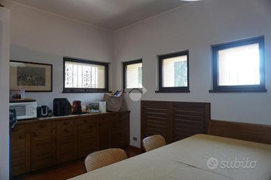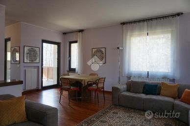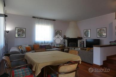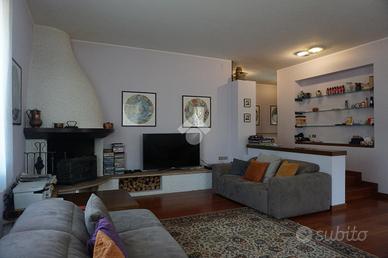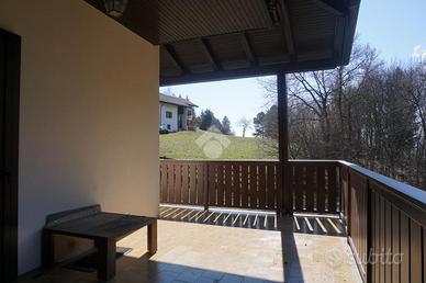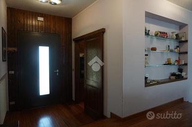 In zona esclusiva e riservata, elegante villa indipendente circondata da giardino pertinenziale di circa 800 mq; l'edificio è composto da un prestigioso piano rialzato con ingresso, zona cottura-pranzo, soggiorno doppio con camino, due corridoi, cinque stanze, tre ripostigli, tre bagni finestrati e un wc; completa l'unità abitativa un ampio terrazzo con collegato balcone ben esposti e panoramici; scala interna che collega l'abitazione al piano seminterrato composto da grande garage (capacità fino a 4/5 posti auto coperti), sala hobby, cantina-deposito sci, ulteriore deposito e centrale termica e. Al primo piano soffitta. Posti auto esterni. Termoautonomo a metano. Edificio recentemente riqualificato (ecobonus con posa cappotto, sostituzione serramenti con scuretti e nuova centrale termica). Possibilità di realizzare ampia unità abitativa al piano mansardato. A due passi dalla fermata del bus navetta.