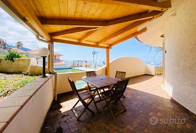Villa Singola Vista Mare- Residence Le Muse All'interno del Residence "Le Muse", zona panoramica e collinare, proponiamo in vendita una graziosa villa singola con corte esterna e posto auto riservato, caratterizzata da una splendida ed ampia vista mare. L'immobile, dotato di tutti i comfort e ristrutturato in ogni sua parte, ha una superficie totale di circa 152 mq, gode di un'ottima esposizione che garantisce luminosità e una piacevole vivibilità degli spazi sia interni che esterni e di una posizione strategica all'interno del residence, a pochi passi dalla piscina condominiale. La proprietà è dotata di ingresso indipendente che conduce ad un ampio patio con tettoia, ideale per pranzi e cene all'aperto, impreziosito da una meravigliosa vista mare; da qui si accede all'abitazione principale, di circa 81 mq, composta da una luminosa cucina-soggiorno con vista panoramica, due camere da letto (una matrimoniale e una doppia) ed un bagno con doccia. Attraverso una scala esterna si raggiunge un'ulteriore corte privata, dalla quale si accede a due locali deposito attualmente adibiti a mini appartamenti, rispettivamente di circa 43 mq e 28 mq, entrambi completi di bagno con doccia; una buona soluzione per ospiti o ad uso investimento. Le tre unità abitative sono complete di impianto di videosorveglianza, condizionatori caldo/freddo, internet via cavo, infissi con vetrocamera. Il Residence, ben curato e riservato, offre servizi esclusivi tra cui una piscina condominiale con vista mare, cancello carrabile elettrico e ampi spazi per il parcheggio. Residenza perfetta per chi cerca una casa vacanze o un'abitazione principale comoda, in un contesto tranquillo e riservato, con una meravigliosa vista mare. Per chi avesse intenzione di acquistarlo, attraverso l'ottenimento di un mutuo, è possibile, su richiesta, ricevere una consulenza gratuita, grazie ai nostri professionisti della Kiron (Società di Mediazione Creditizia del Gruppo Tecnocasa), i quali offrono servizi e pr